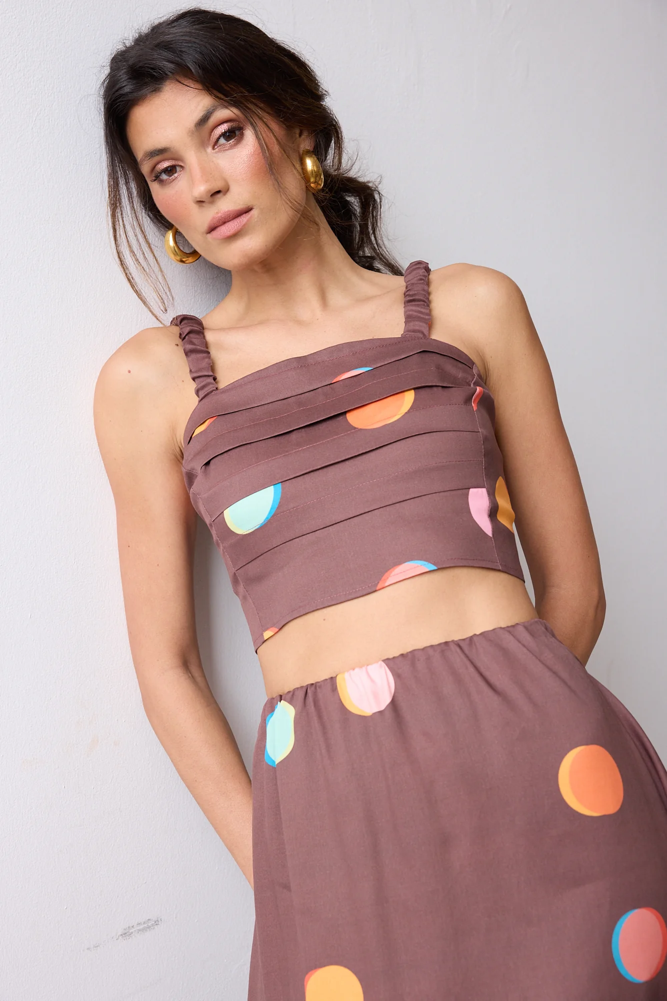 Effortlessly stylish MIRANDA top in playful polka dots.