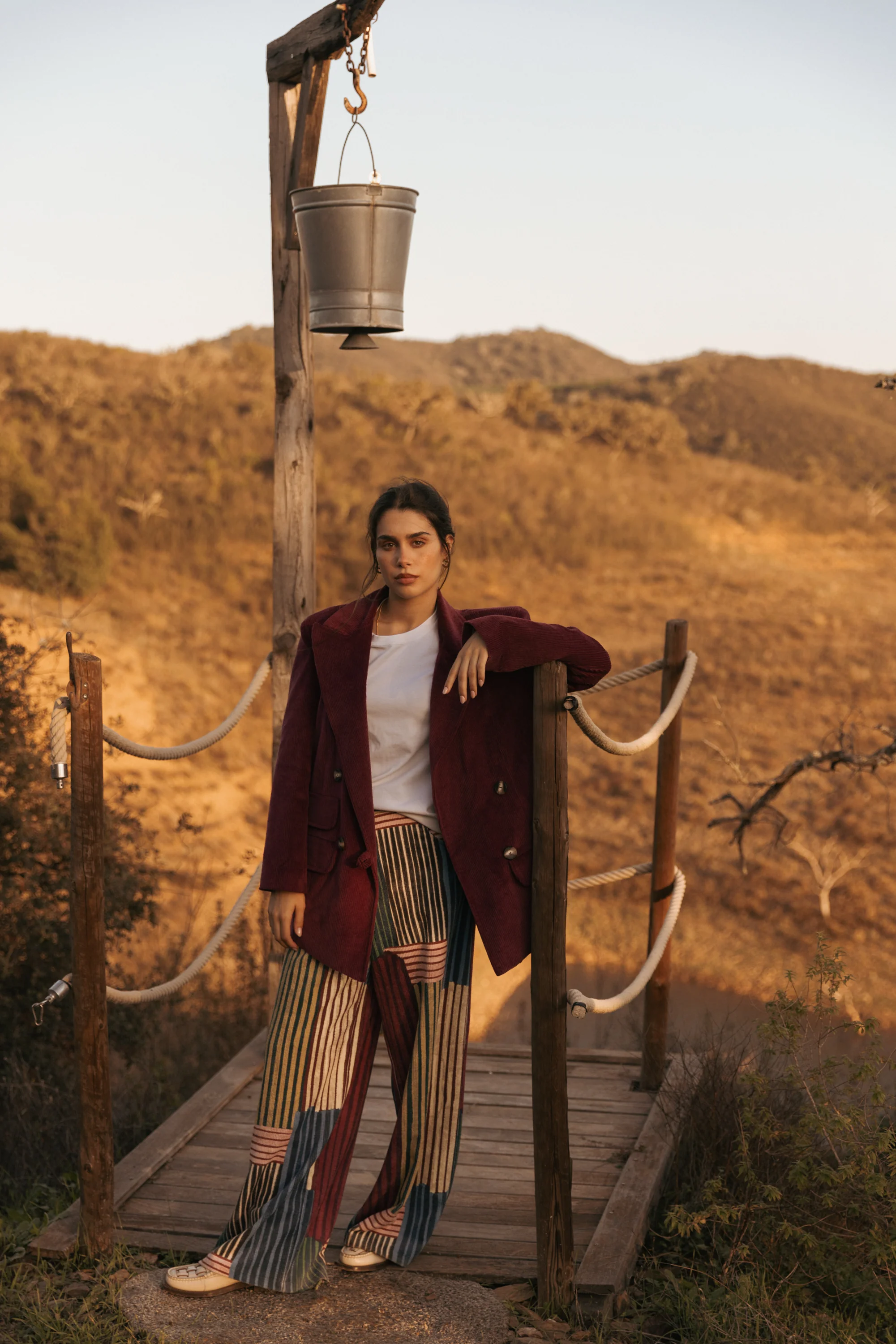 O padrão das calças foi exclusivamente desenhado à mão para a Sienna.Â