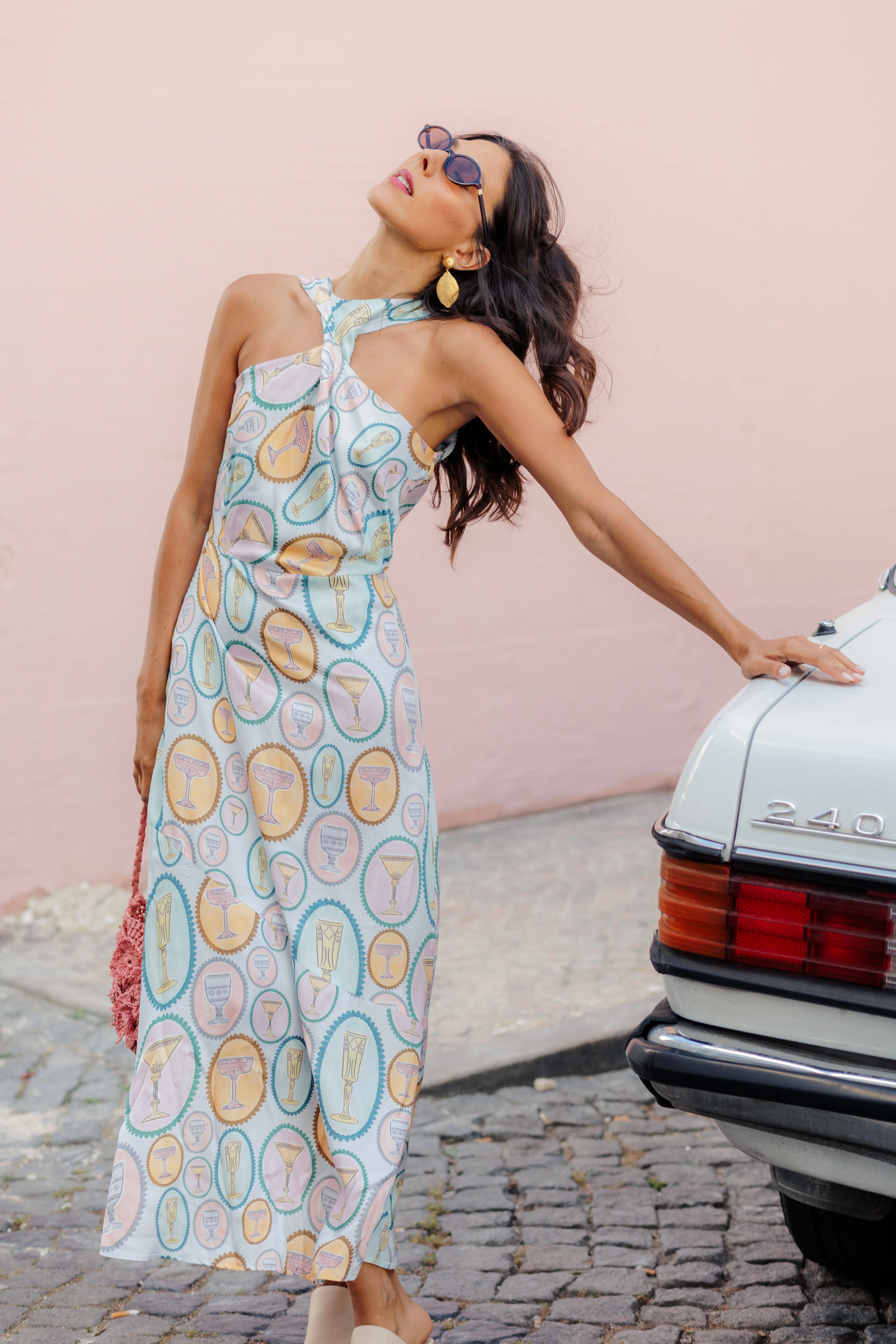 The MIRA dress is one of our favourites for this new collection. With a hand-drawn pattern with different glasses, it has an extremely feminine silhouette.